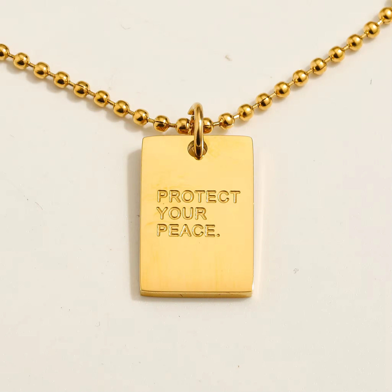 Protect Your Peace Pendant Necklace - 18k Gold Plated Adjustable 18"+ 2" ball chain.